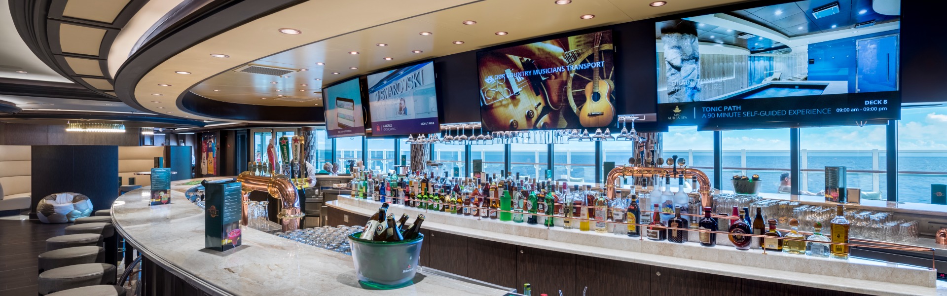 בר חיצוני המיועד לאורחי חבילת Aurea, המציע קוקטיילים מרעננים ונוף לים.