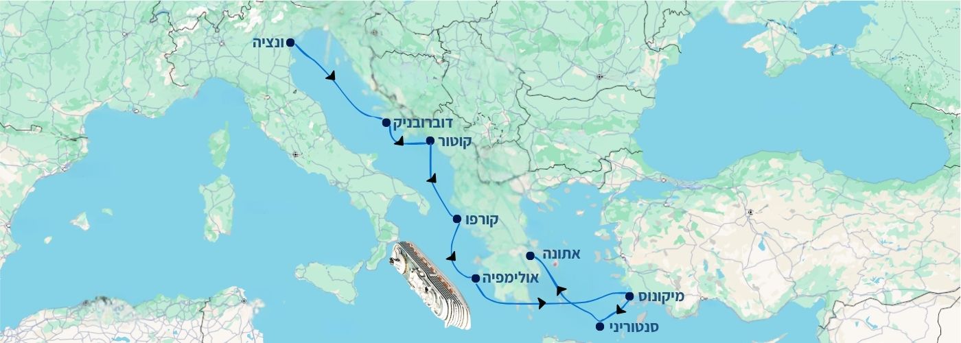 קרוז יוקרתי ביוון ובאיטליה עם אוניית הפאר Norwegian Pearl מסע קסום מוונציה ועד אתונה – בין דוברובניק, סנטוריני, מיקונוס וקורפו צאו לחופשה חלומית על סיפונה של Norwegian Pearl – קרוז יוקרתי בים התיכון המשלב תרבות, נופים וחופים מרהיבים. ההפלגה יוצאת מ־ונציה (Ravenna) שבאיטליה, ממשיכה אל דוברובניק הקסומה שבקרואטיה ואל מפרצי קוטור שבמונטנגרו, ומשם אל שרשרת האיים היווניים האייקוניים – קורפו, אולימפיה (קטאקולון), מיקונוס ו־סנטוריני. את המסע נחתום בעיר ההיסטורית אתונה (Piraeus) – לבה של יוון העתיקה והמודרנית. לאורך כל הקרוז תיהנו משירות מעולה, אווירה יוקרתית, מסעדות גורמה, ספא מפנק, מופעים בינלאומיים ובריכות המשקיפות לנופי הים התכול. זהו קרוז ליוון ואיטליה עם כל מה שחלמתם עליו – שמש, ים, תרבות ורוגע אינסופי.