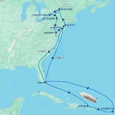 הצטרפו אלינו לטיול של פעם בחיים המשלב את הקסם האורבני של החוף המזרחי עם חופשת בטן-גב אקזוטית. הטיול מתחיל בסיור עומק יבשתי בין הערים הגדולות ותופעות הטבע של ארה"ב, ומסתיים בהפלגת פאר בת 7 לילות לאיים הקאריביים על אחת האוניות החדשות והמבוקשות בעולם – Celebrity Beyond. המסלול היבשתי – המיטב של ארה"ב:ניו יורק: סיור מקיף במנהטן (טיימס סקוור, השדרה החמישית, גראונד זירו) ושייט לפסל החירות. טבע עוצר נשימה: שייט באלף האיים בגבול קנדה , ביקור בקניון ווטקינס גלן ואגמי האצבעות , ושיא הטיול – מפלי הניאגרה (כולל שייט ב"עלמת הערפל" וסיור לילי). היסטוריה ותרבות: סיור בוושינגטון הבירה (הבית הלבן, גבעת הקפיטול ומוזיאון החלל) , ביקור בכת האמיש בפנסילבניה ופעמון החירות בפילדלפיה. שופינג: יום קניות באאוטלט ענק בניו ג'רזי (Jersey Gardens). הקרוז – פינוק בים הקריבי:לאחר טיסה לפלורידה, נעלה על אוניית הפאר Celebrity Beyond להפלגה חלומית: קוקקיי (בהאמס): יום כיף בריזורט הפרטי והאקסקלוסיבי. סן חואן (פורטו ריקו): סיור בעיר העתיקה ובמבצרים ההיסטוריים. סנט מרטן (פיליפסבורג): אי המשלב תרבות הולנדית וצרפתית עם חופים מרהיבים. למה לבחור בטיול הזה? (הכל כלול):המחיר כולל טיסות, לינה בבתי מלון איכותיים בטיול היבשתי, ומדריך ישראלי צמוד. במהלך הקרוז תיהנו מפינוק אולטימטיבי: פנסיון מלא, חבילת שתייה קלאסית (כולל אלכוהול!), חבילת גלישה באינטרנט (Wi-Fi) ,מיסי נמל וטיפים לנותני שירות כלולים.