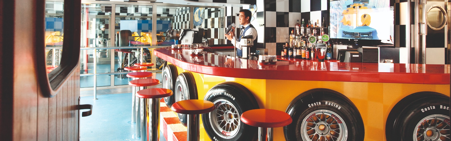 A casual bar where guests can watch international sports tournaments.
