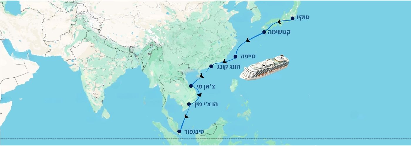 הצטרפו אל קרוז פרימיום של חברת Celebrity Cruises באוניית הפאר Celebrity Millennium – למסע ימי אל לב התרבות, הקולינריה והיופי של המזרח הרחוק. נתחיל בטוקיו, נצלול לרחובות העתיקים של טייפה, נרגיש את האנרגיה של הונג קונג, נגלה את הרי קגושימה, נתרגש מהאותנטיות של צ’אן מיי והו צ’ין מין בווייטנאם, ונסיים בסינגפור המרהיבה – הכל באווירה אלגנטית, עם שירות מוקפד, אוכל משובח ואירוח בלתי נשכח.